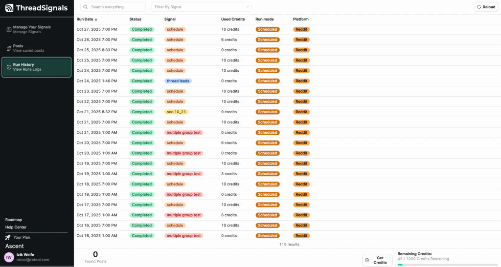 Your Run History doesn’t just show when Signals ran—it helps you understand how well each Signal is performingand how efficiently your credits are being used.